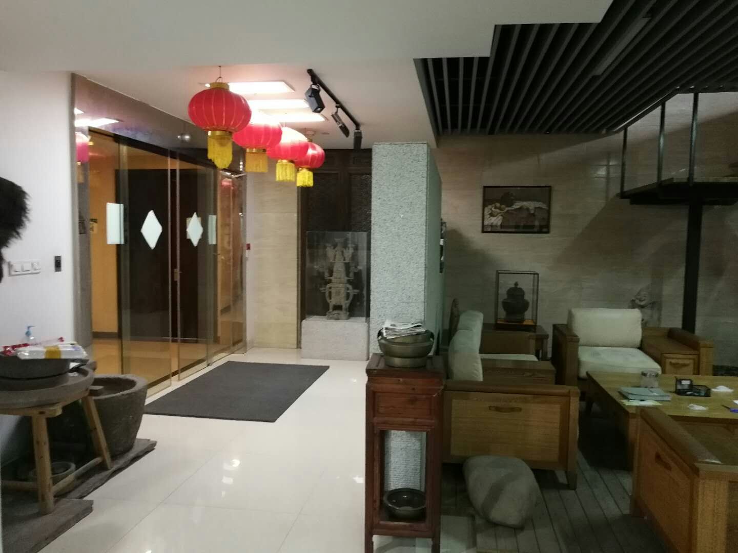 此套办公室 古色古香的装修风格 办公环境舒适 有一间复式挑高面积赠送 可作为会议室 经理室等等